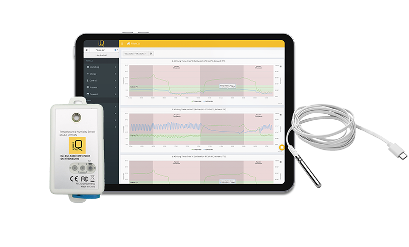 Nach Artikel 5 der Lebensmittelhygieneverordnung 852/2004 sind alle Lebensmittelunternehmer zur Einrichtung, Durchführung und Aufrechterhaltung, sowie stetiger Anpassung eines HACCP-Systems verpflichtet und müssen dies gegenüber der Lebensmittelüberwachungsbehörde nachweisen. Um diesen Vorgang zu vereinfachen und zu digitalisieren, wurde das Modul CONTROL als kostengünstige Alternative entwickelt. Auf der Shop-IQ Webapp werden z.B. die Daten in Echtzeit angezeigt und die Zeitläufe der Soll- und Ist-Werte übersichtlich dargestellt.